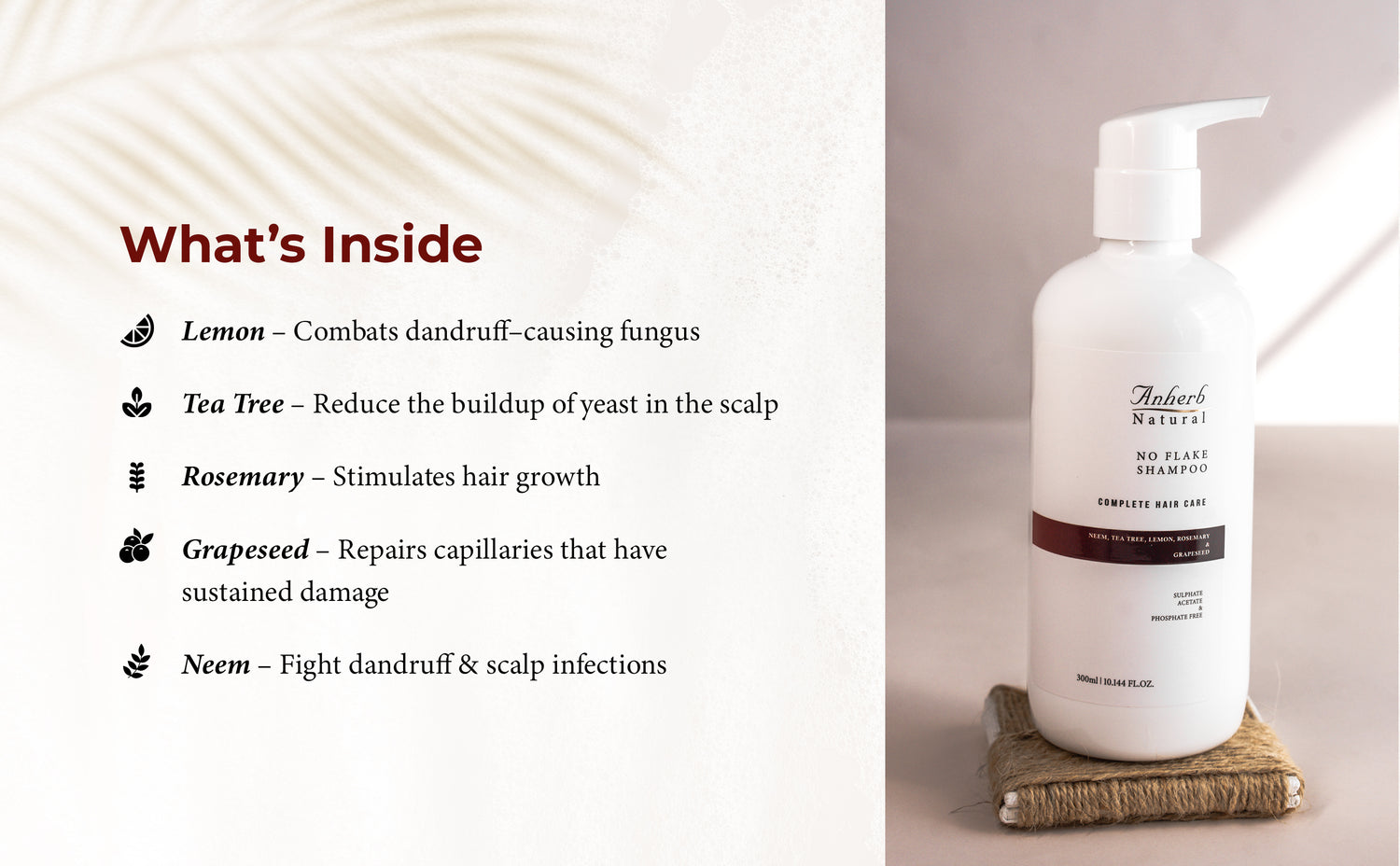 No Flake Shampoo - 300ml | Lemon, Tea Tree, Rosemary, Neem Blend