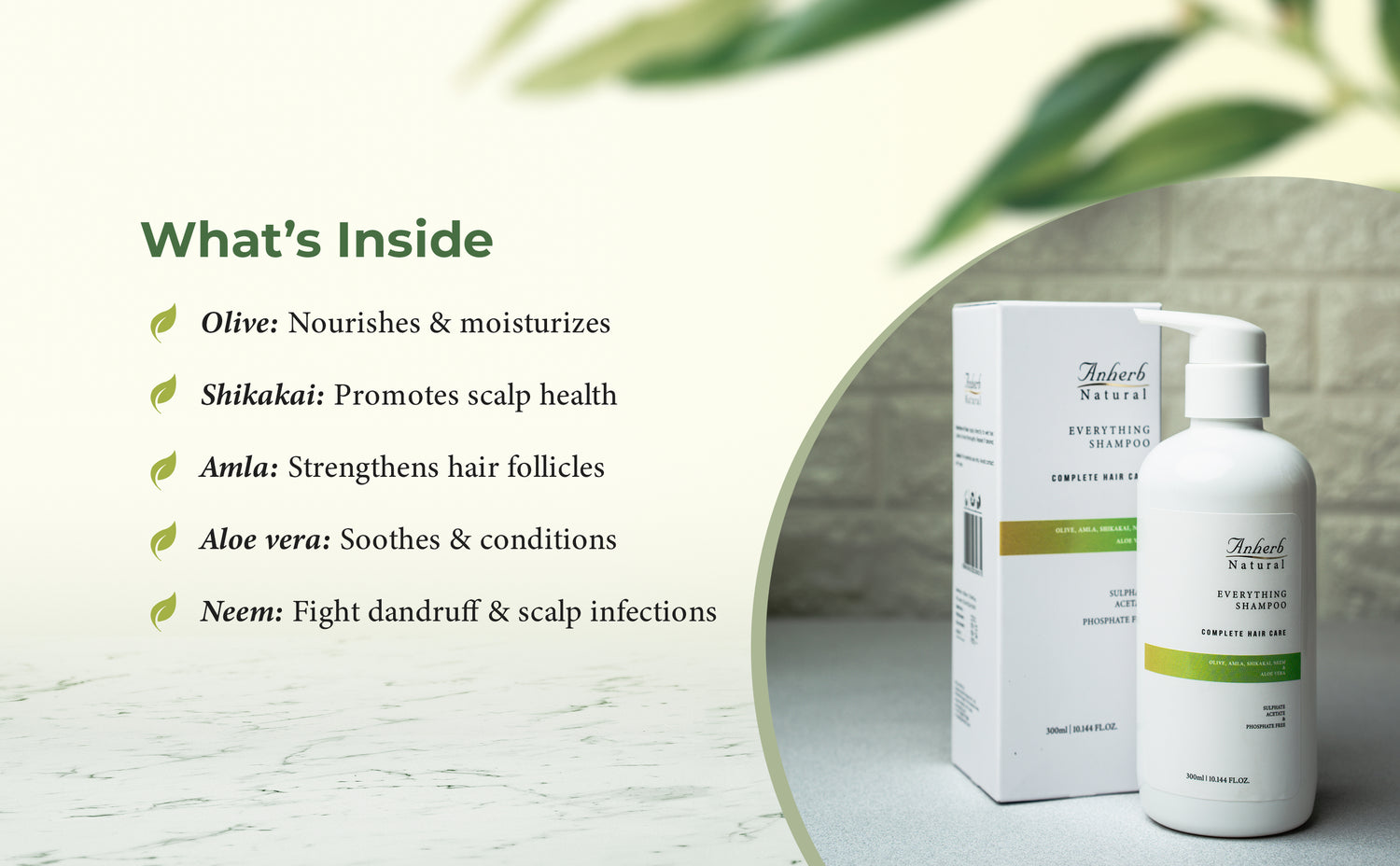 Anherb Natural Everything Shampoo - 300ml | Olive, Amla, Shikakai, Neem, Aloe Vera Blend